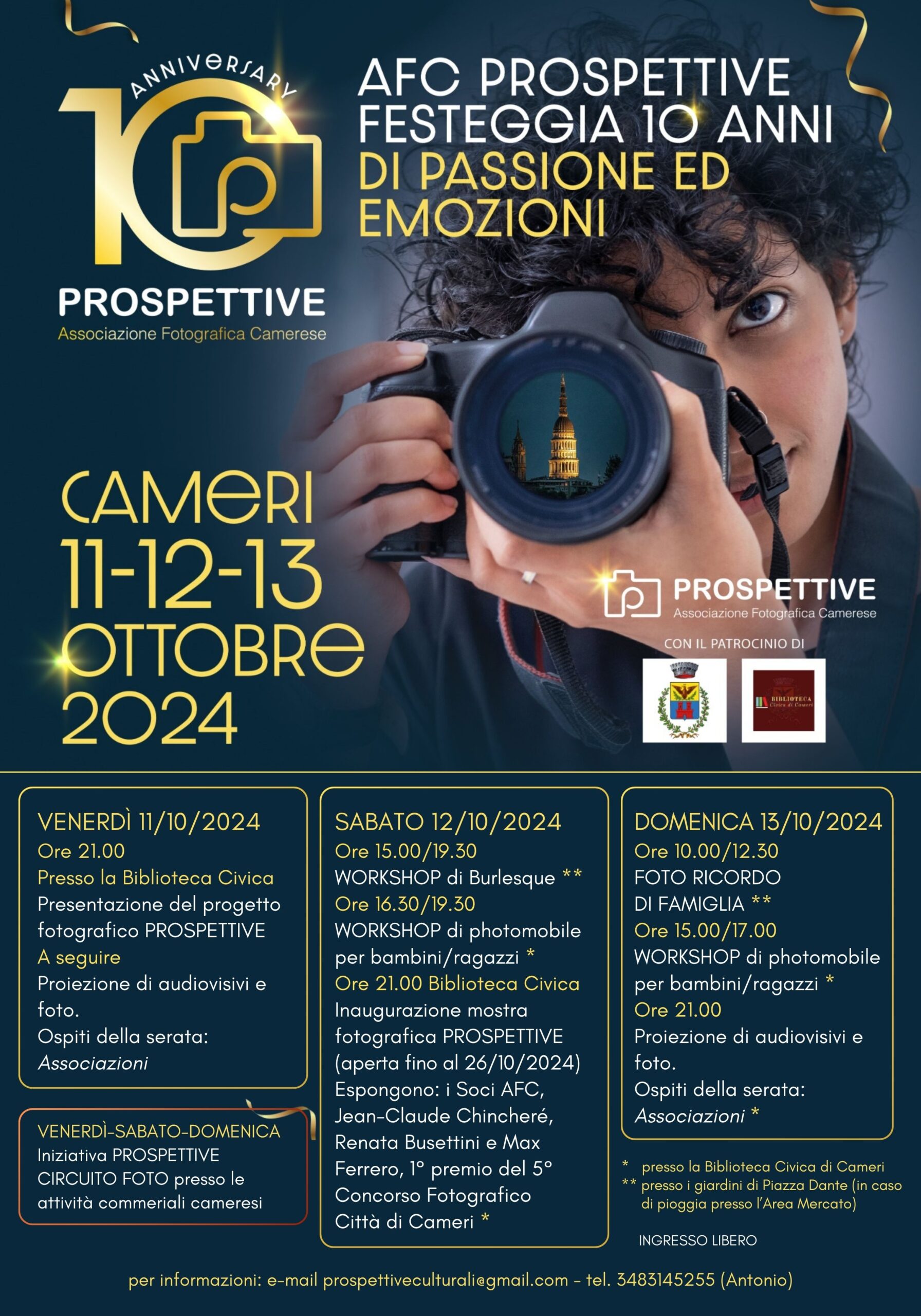 La Biblioteca civica di Cameri parteciperà agli eventi organizzati dall’Associazione Fotografica Camerese Prospettive per i primi dieci anni di attività.