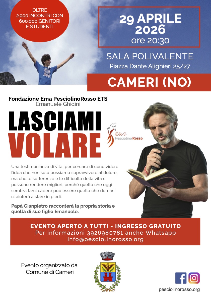 Una testimonianza di vita per cercare di condividere l’idea che non solo possiamo sopravvivere al dolore, ma che le sofferenze e le difficoltà della vita ci possono rendere migliori. Papà Gianpietro racconterà la propria storia e quella di suo figlio Emanuele.
